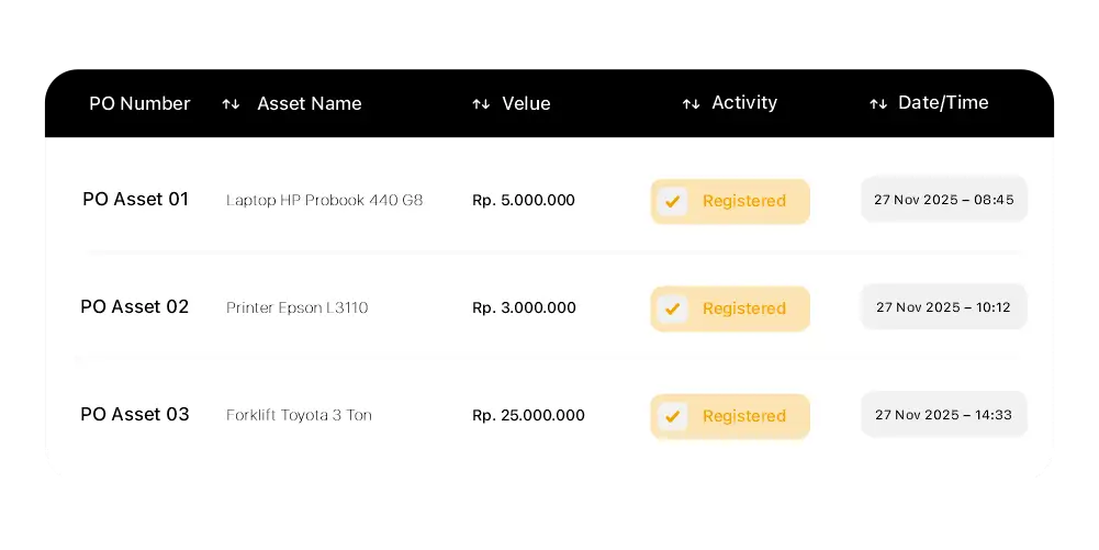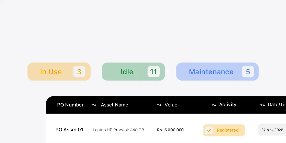 Riwayat aktivitas dan perubahan aset tercatat otomatis sebagai audit trail