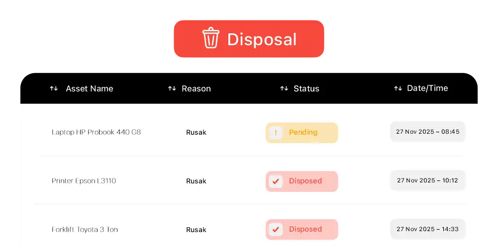 Kelola penghapusan aset rusak, hilang, atau sudah tidak bernilai